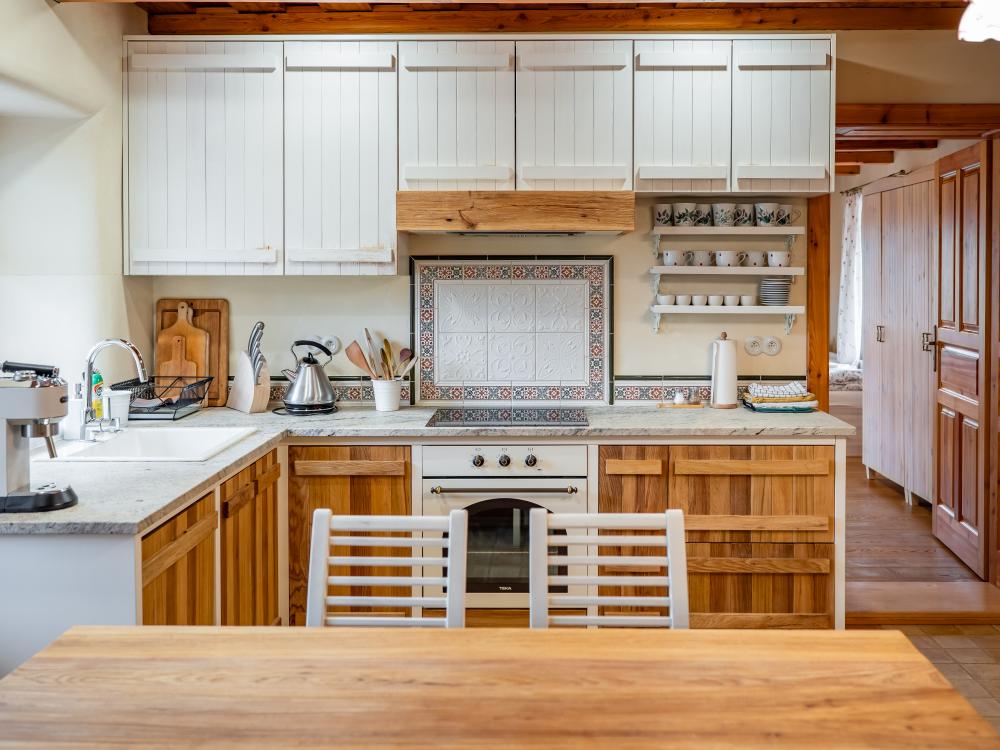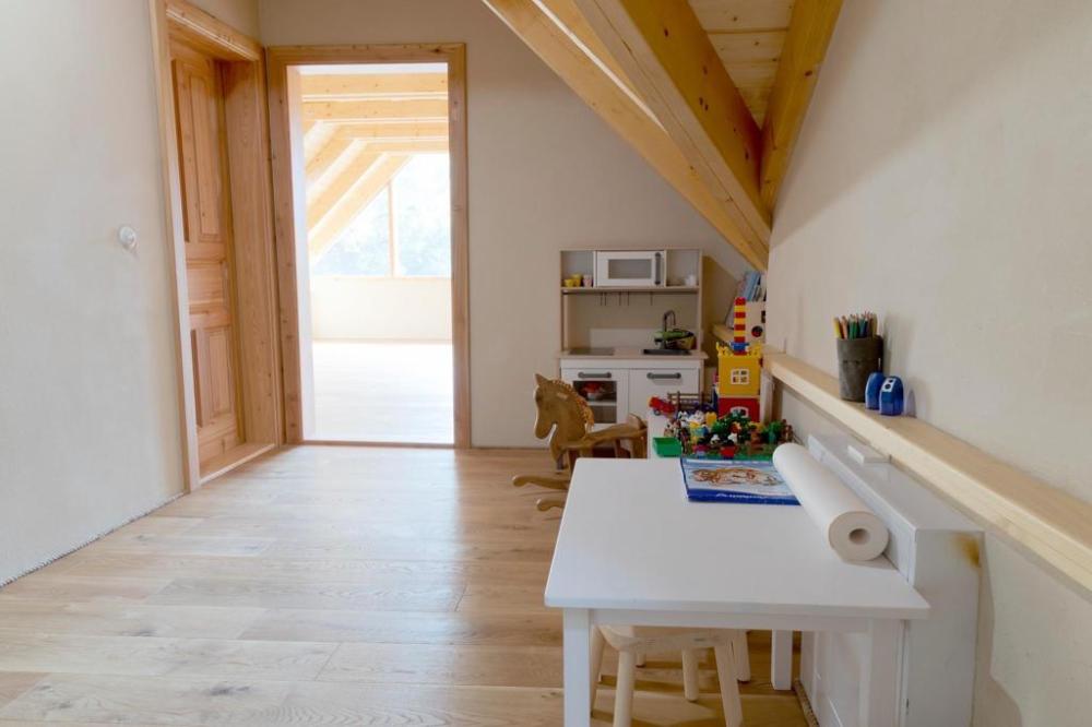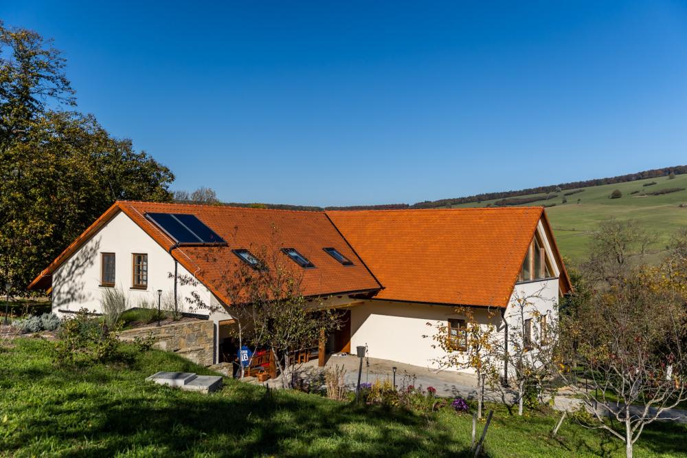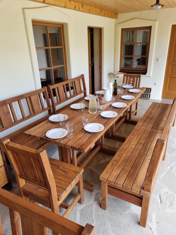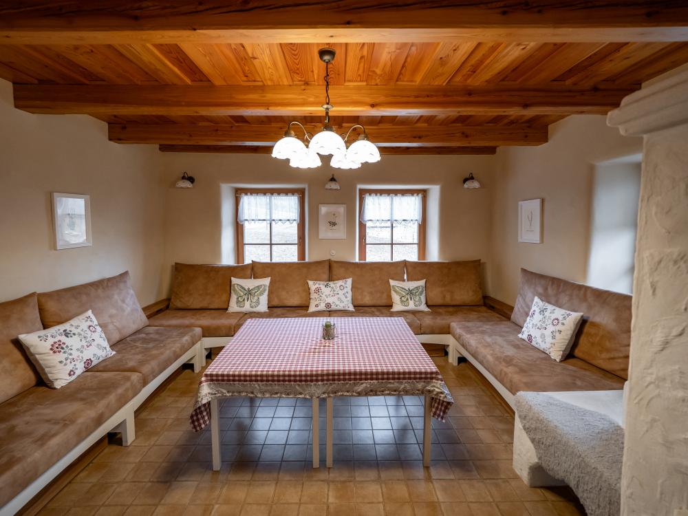 Chalupa Kaška stands as our premier accommodation, boasting five elegantly appointed bedrooms,four modern bathrooms, and a spacious dayroom designed for ultimate comfort and relaxation. Thisexpansive retreat is perfect for those seeking a blend of luxury and homely charm. The ground floor welcomes you with a fully equipped kitchen, featuring a cozy dining table, and flowsinto a comfortable living room adorned with a spacious sofa, creating the perfect setting for relaxationand socializing. Two modern bathrooms, complete with toilets and showers, ensure convenience andprivacy. The kitchen boasts a full suite of appliances including a refrigerator, freezer, stove, microwave,coffee maker, and oven, catering to all your culinary needs. Additionally, the ground floor hosts thelargest bedroom, offering a welcoming double bed and two single beds, promising a restful night's sleepfor all. Nestled in the cozy attic, discover four charming rooms, each with its own unique setup: two four-bedrooms featuring a double bed and a single with a pull-out option, a three-bed room with a double anda single bed, and a romantic two-bed room with a double bed. Complementing these inviting spacesare two well-appointed bathrooms with toilets and showers, ensuring comfort and convenience. The highlight of the attic is a versatile common room, bathed in natural light from a large window,creating an ideal ambiance for yoga, pilates, meditation, or dance sessions, comfortablyaccommodating 10-12 people. For those seeking a playful break, a ping-pong table is also available,promising fun and entertainment for guests of all ages. This attic is designed to cater to both yourrestful and recreational needs. Just steps outside the cottage, guests are welcomed by a delightfulcovered terrace, featuring two large tables perfect for outdoor dining or simply enjoying the fresh air.Adjacent to Chalupa Kaška, a whimsical children's playground awaits, offering endless fun andadventure for our younger guests in a safe and enchanting environment.
